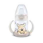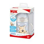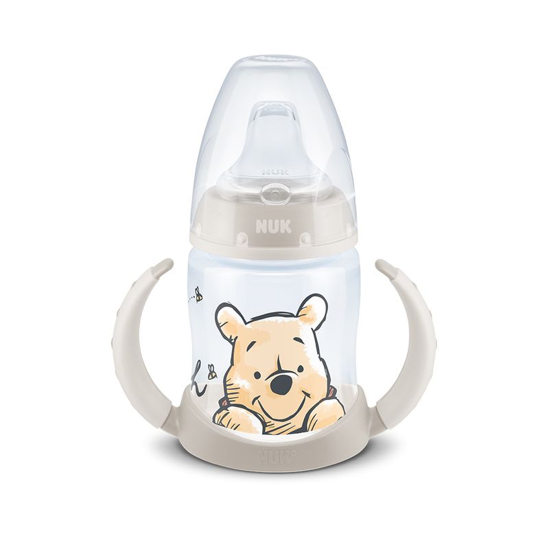 O Copo de Treinamento NUK First Choice Disney Pooh com Controle de Temperatura 150ml possui junto ao marcador de graduação do frasco o novo indicador que ajuda os pais na tarefa de assegurar a temperatura adequada dos alimentos para o consumo seguro das crianças. Se o conteúdo estiver muito quente, acima de 37º, o indicador de temperatura ficará branco, aguarde o indicador voltar a cor azul para oferecer o copo. Ideal para auxiliar os bebês na transição da mamadeira ao copo. Suas alças antiderrapantes são adequadas para as mãozinhas das crianças. É totalmente desmontável o que facilita a limpeza. Seu bico de silicone antivazamento possui a válvula NUK Air System Anticólica que abre e fecha instantaneamente a cada sucção, reduzindo a ingestão de ar, minimiza a formação de bolhas e promove uma alimentação contínua. Recomendado para crianças a partir dos 6 meses de idade, o copo é livre de BPA e compatível com toda a linha de produtos NUK First Choice.