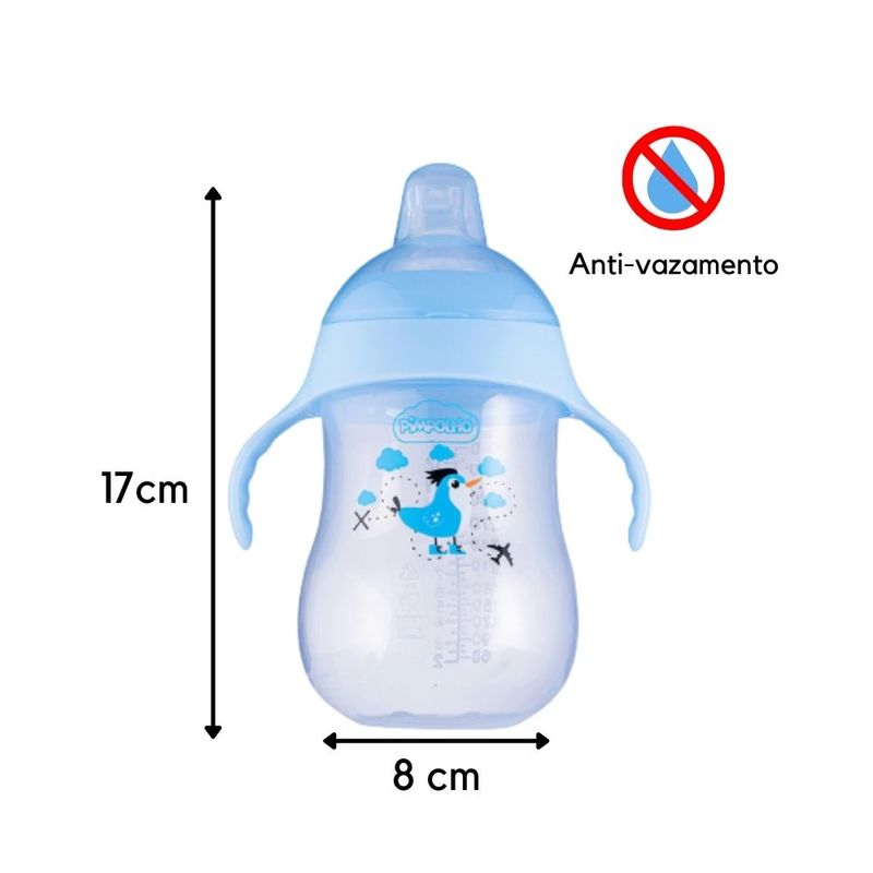 O copo de treinamento Pimpolho possui bico de silicone que estimula o exercício de sucção e o desenvolvimento oral. Não vaza e possui tampa para proteger o bico contra sujeira. Auxilia na transição da mamadeira para o copo.