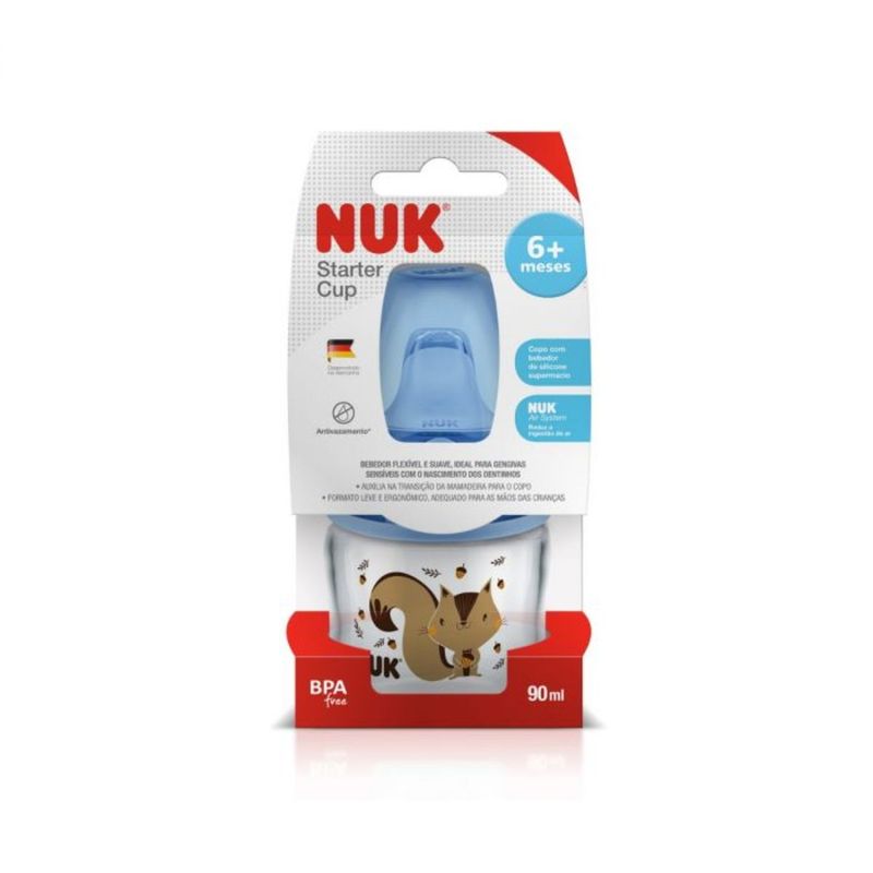 O Copo Starter Cup NUK FC 90ml apresenta um novo formato, leve e ergonômico, ideal para a mamãe oferecer água, suco ou até mesmo a fórmula para seu bebê.