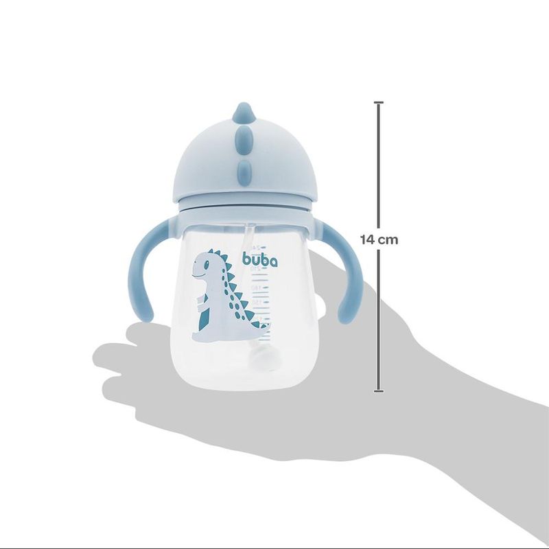 O Copo Dino com alça da Buba é a escolha ideal para o dia a dia dos pequenos, seu bico é feito em silicone, suas alças são anatômicas para que as mãozinhas dos pequenos encaixe perfeitamente e seu canudo possui dispositivo inteligente que mesmo que a criança vire o copo de ponta cabeça, é possível continuar bebendo o líquido. Possui também tampa higiênica para evitar que caia sujeira no bico. Além disso, vem com estampa de dinossauro, para deixar a hora do lanche ainda mais divertida.