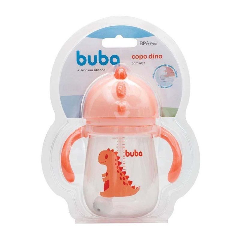 Copo Dinossauro c/ Canudo Para Bebê, Alça Removível, 240ml - Buba