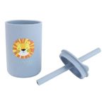 Um lindo com copo e canudo sendo confeccionados em silicone, com pontas arredondadas. Dispondo também de uma tampa ideal para transição de mamadeira para o copo.