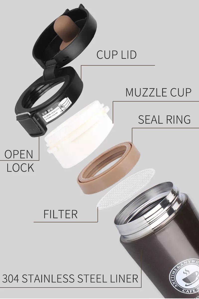 Copo Garrafa Termico Vacuum Cup - 380ml Café Chá Inox