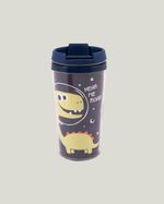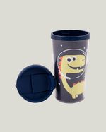 Copo térmico com temática de dinossauro. Tampa com vedação de silicone e modelo abre-fecha. Indicado para bebidas até 60°C. Mantém a bebida aquecida por cerca de 2 horas, dependendo da temperatura inicial da bebida, do ambiente e se a tampa estiver fechada adequadamente.