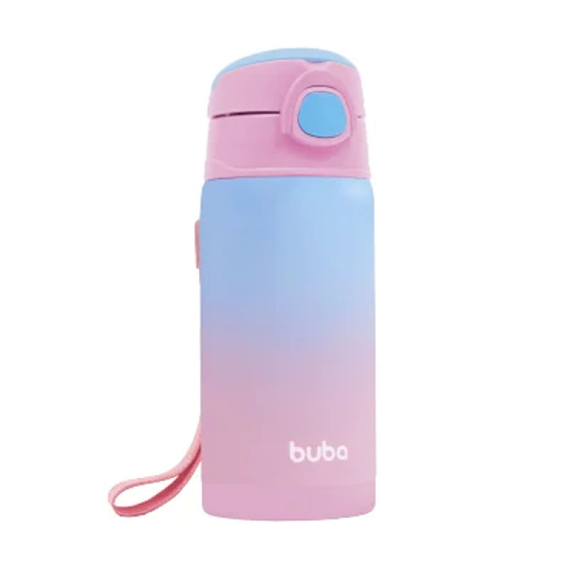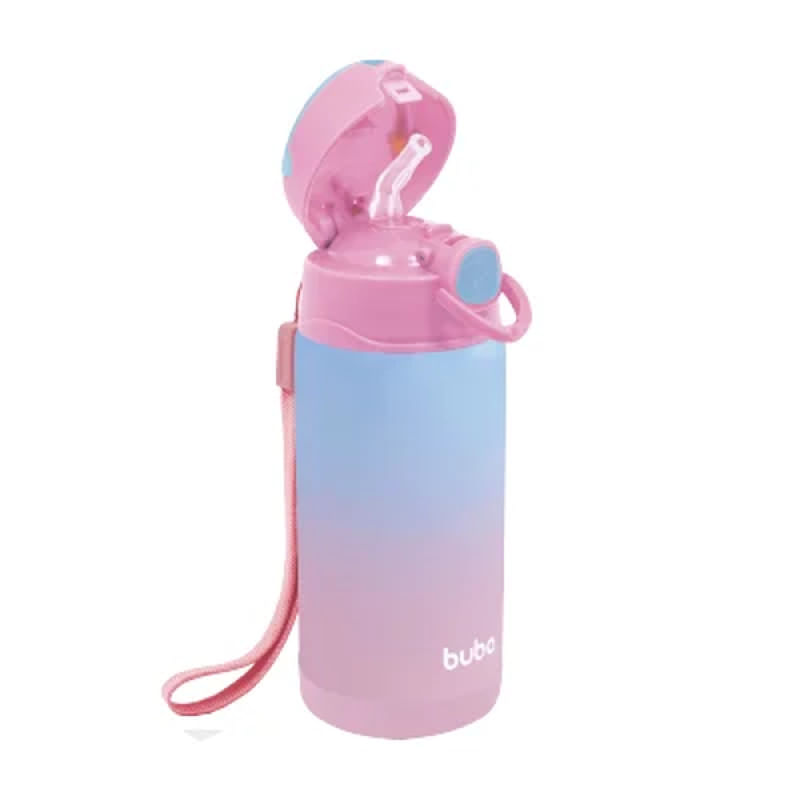Copo Térmico Parede Dupla Com Canudo Rosa 400ml 15933 -Buba -