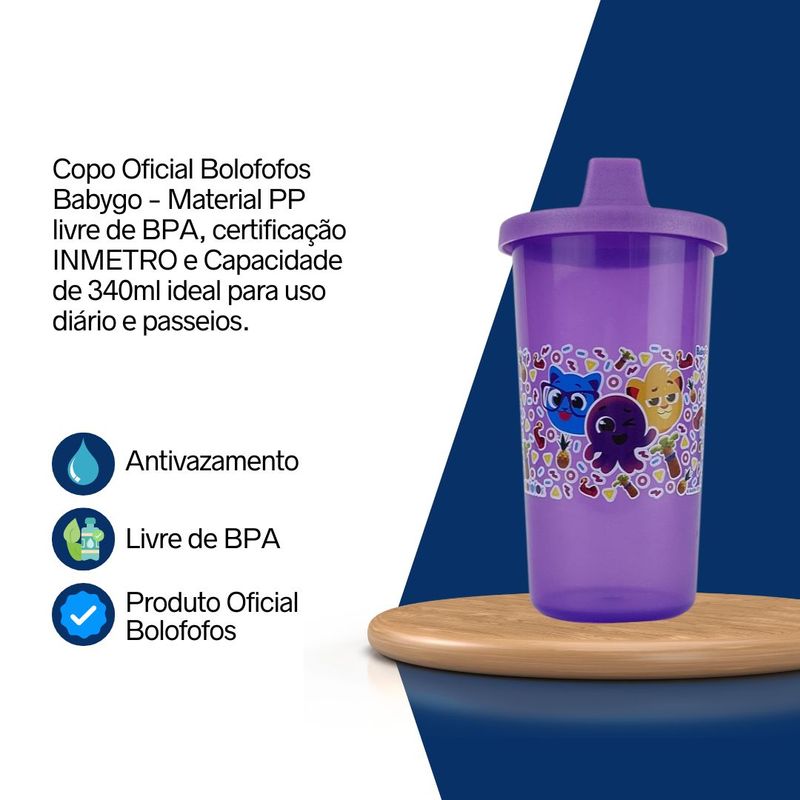 O Copo Easy 340ml Bolofofos BabyGo facilita a transição da mamadeira para o copo comum, desenvolvendo a independência alimentar da criança de forma segura e divertida. Com sistema antivazamento e bico rígido, oferece a resistência ideal para o desenvolvimento da musculatura oral, preparando seu filho para beber em copos convencionais. Os adoráveis personagens Bolofofos licenciados oficialmente tornam cada momento de hidratação mais alegre e estimulante. Produzido em polipropileno livre de BPA com certificação INMETRO, garante total segurança para o contato alimentar, enquanto a capacidade de 340ml atende perfeitamente as necessidades de hidratação de crianças em crescimento.