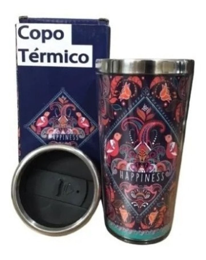 Este copo térmico "Happiness" mantém suas bebidas na temperatura ideal e é feito de aço inoxidável durável com uma tampa de vedação segura. Com a palavra "Happiness" estampada, ele é um acessório encantador e inspirador, ideal para uso diário, no trabalho, academia ou viagens.