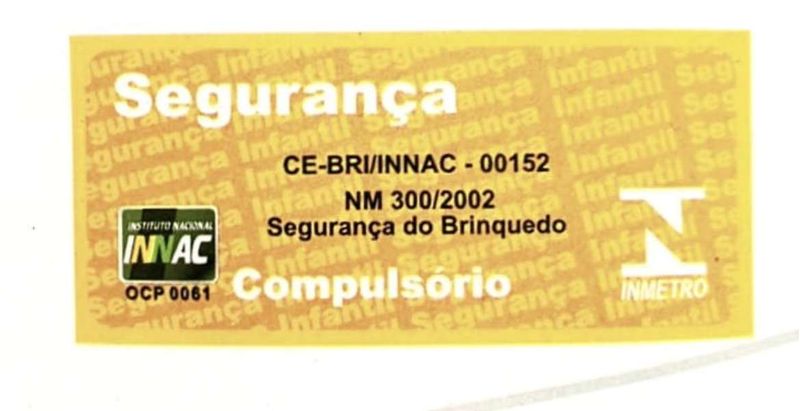 Certificação INMETRO: CE-BRI/INNAC 00152-000 - NM 300/2002 - OCP 0061 SEGURANÇA DO BRINQUEDO"