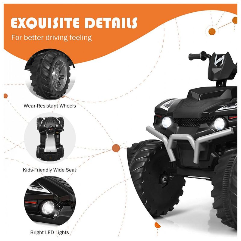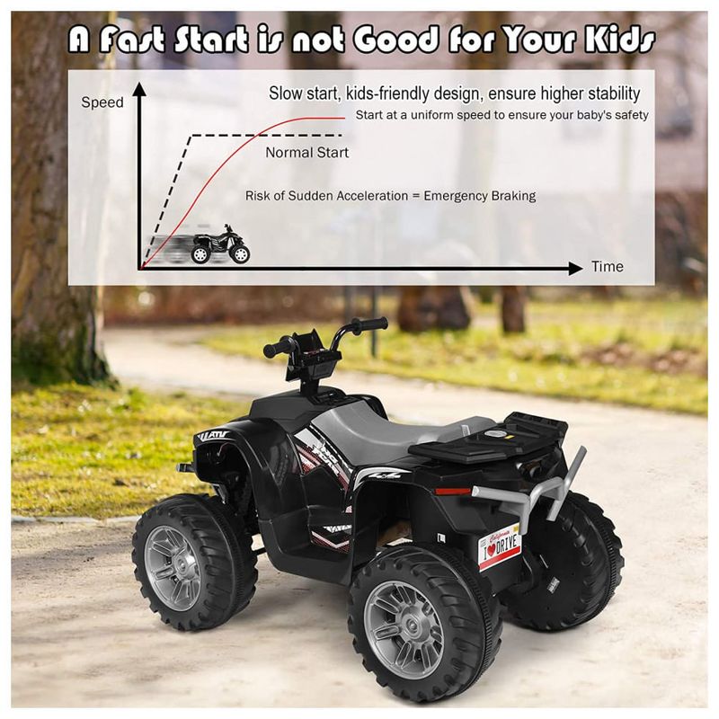 Proteção mais elevada com função de arranque lento o passeio no ATV adota tecnologia de arranque lento avançada que se destina a proteger os seus filhos durante o tempo de condução manual, caso o início rápido possa assustá los, embora o assento largo que se adapta bem ao corpo das crianças forma leva o nível de conforto para o próximo nível.