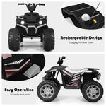 Cheering Music Story for Infinite Fun O ATV elétrico alimentado por bateria de design recarregável dá a seus filhos a capacidade de dirigir por muito tempo após uma carga completa. O display de energia lembra você de carregá lo a tempo. E são várias músicas e histórias, pensadas para animar os seus filhos para que não se sintam entediados. A função de slot USB disponibiliza mais recursos.