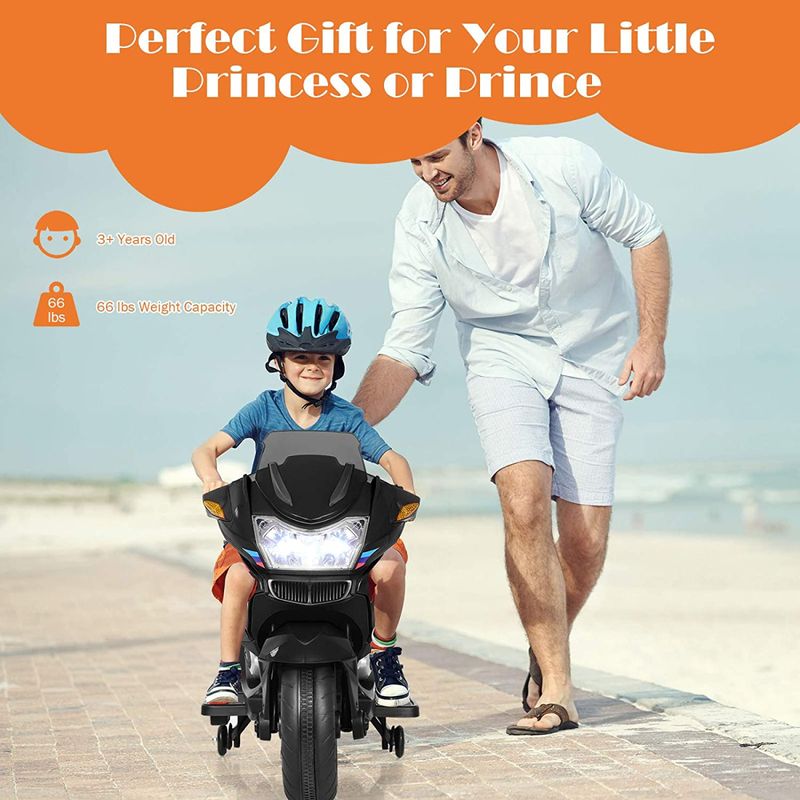 Presente perfeito para crianças luzes LED brilhantes iluminam o ambiente escuro para uma direção segura. Sua aparência legal e realista de uma motocicleta real pode r o interesse das crianças, permitindo lhes experimentar a sensação de um super herói. É um presente perfeito para crianças com mais de 3 anos