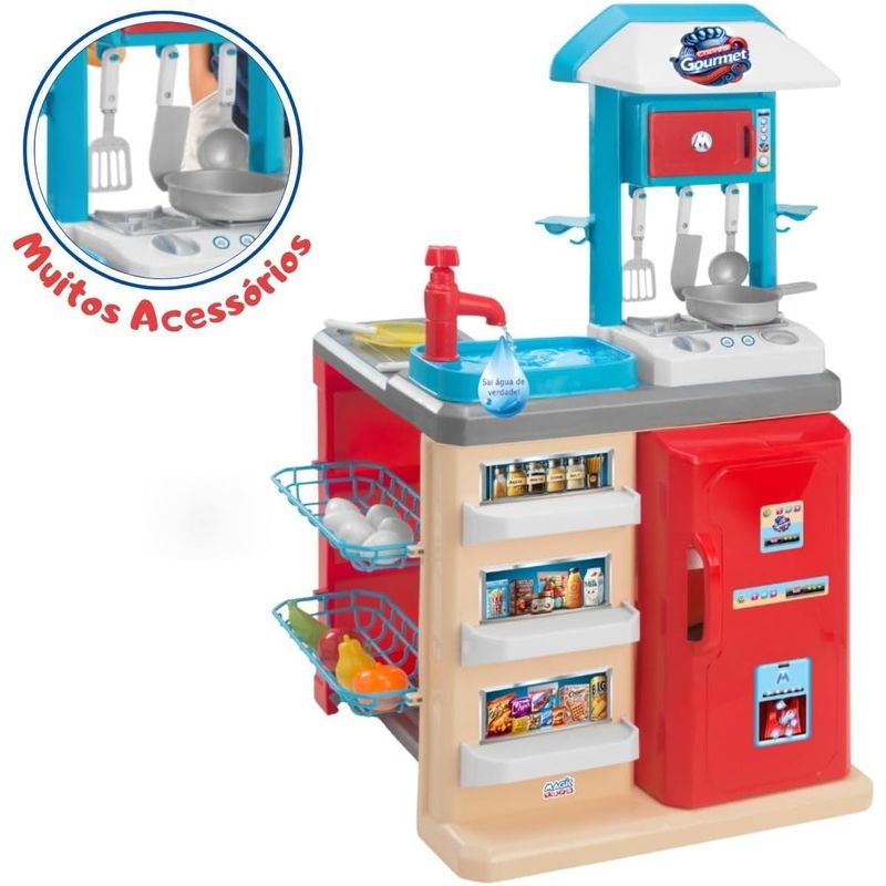 O brinquedo ainda conta com uma bomba dágua funcional, que libera água de verdade, tornando a brincadeira mais interativa e divertida. Ideal para crianças a partir de 3 anos, a Cozinha Gourmet Vermelha é perfeita para desenvolver habilidades motoras, coordenação e imaginação, proporcionando momentos de diversão segura e educativa.