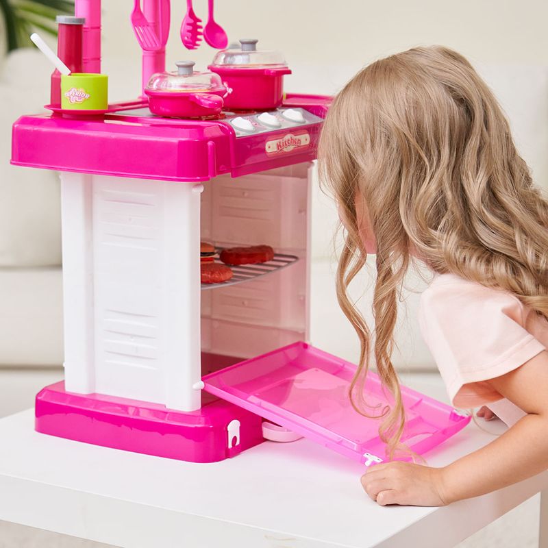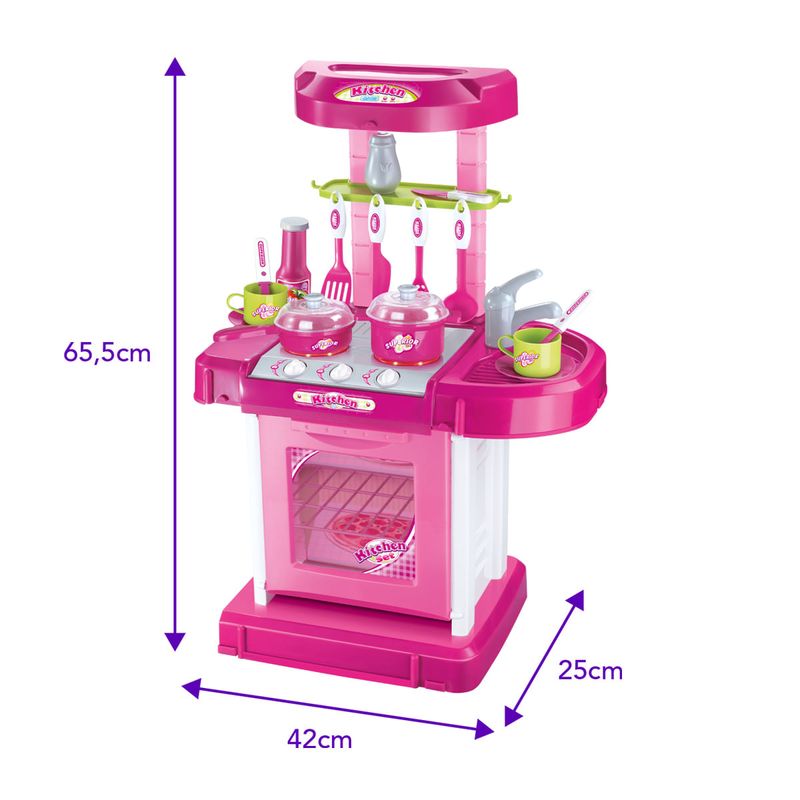 Cozinha Infantil Princess Kitchen com Som e Luz - ReplayKids Prepare-se para uma experiência mágica na cozinha com a Cozinha Infantil Princess Kitchen da ReplayKids! Com a ReplayKids, a diversão é garantida! Esta encantadora cozinha infantil apresenta em sua bancada diversos acessórios coloridos e divertidos, tudo dentro de uma maleta compacta. Com efeitos de som e luzes, a Princess Kitchen proporciona uma experiência sensorial envolvente para os pequenos chefs. Os instrumentos coloridos com texturas variadas estimulam o desenvolvimento desde o tato até a coordenação motora, incentivando a criatividade e a percepção visual através de diferentes cores e formas. Além disso, a interação com pais e amiguinhos torna a brincadeira ainda mais especial. Recomendada para crianças a partir de 3 anos, a Princess Kitchen é completa, com pia, fogão e forno, oferecendo uma infinidade de possibilidades para a imaginação das crianças. Para acionar os efeitos sonoros e de luzes, são necessárias 3 pilhas "AA" (não inclusas) e uma chave de parafuso Phillips (também não inclusa). Esta cozinha proporciona uma série de vantagens, incluindo a interação entre pais e filhos, o estímulo à coordenação motora, à criatividade e à imaginação das crianças, tornando-a um brinquedo essencial para o desenvolvimento infantil. Prepare-se para horas de diversão culinária com a Cozinha Infantil Princess Kitchen da ReplayKids! Principais Características: