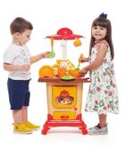 Para Cozinhar Delícias do Interior! Estilosa e funcional a cozinha do sítio estimula a criatividade das crianças através do faz de conta. A graça da cozinha fica por conta do fogão superior com peças de encaixe, como em um fogão a lenha de verdade! E, para enriquecer ainda mais a brincadeira, o fogão possui um suporte para pendurar o pano de louça na borda, e a coifa é multiuso, nela é possível pendurar os utensílios da cozinha. Além das cores atemporais que lembram uma cozinha de sítio, ela acompanha vários acessórios, como pratos, xícaras, talheres, panela e leiteira com tampa. Também possui pia com torneira que sai água de verdade, conta ainda com mais um forno na parte inferior, com gaveta. Acessórios: