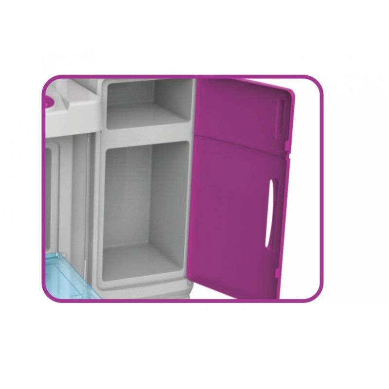 Estimula e desenvolve o aprendizado infantil através do faz de conta, a organização e a utilização dos utensílios da cozinha.