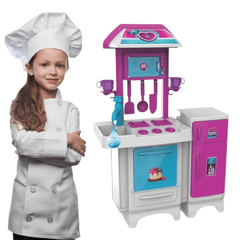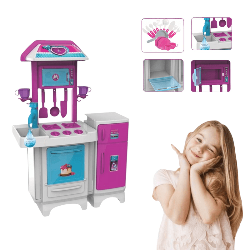 Cozinha Infantil Completa PINK Fogão Geladeira Forno Pia Sai água de Verdade Brincar Casinha Criança - Magic TOYS