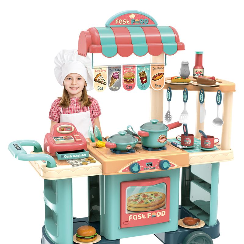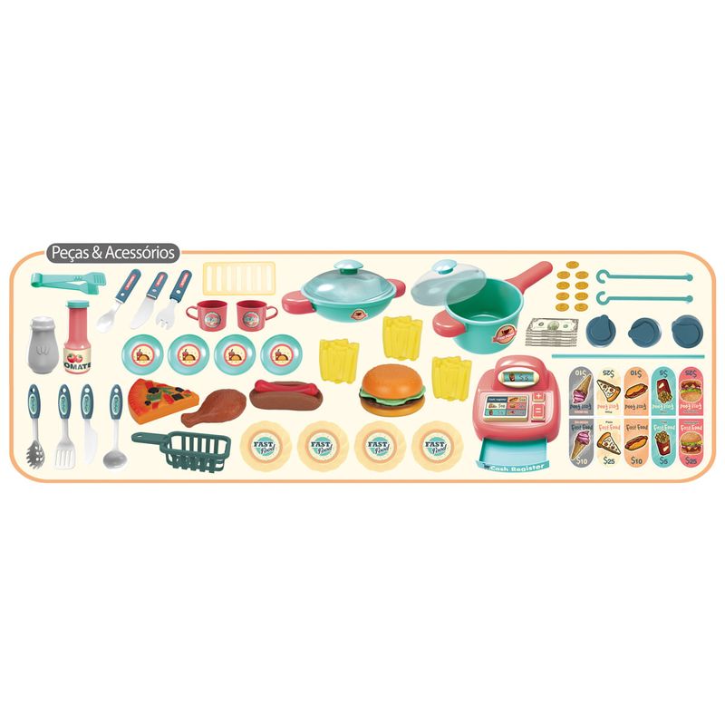 Cozinha Bancada Food Truck de Brinquedo Fast-Food - Replay Kids Prepare-se para embarcar em uma deliciosa aventura de faz de conta com o Food Truck da Replay Kids! Com o Food Truck Replay Kids, a diversão está garantida em qualquer lugar! Este incrível brinquedo simula um carrinho fast-food, completo com lanches, pizza, batata frita e uma variedade de acessórios. Equipado com uma caixa registradora e dinheiro de mentirinha, permite que os pequenos empreendedores realizem atendimentos completos, preparando-os para as mais incríveis brincadeiras de faz de conta. Estimulando a criatividade e a imaginação das crianças, o Food Truck é muito mais que um simples brinquedo. Sem a necessidade de pilhas, ele oferece uma experiência totalmente controlada pela imaginação das crianças, promovendo o desenvolvimento motor, cognitivo e criativo. Recomendado para crianças acima de 3 anos, o Food Truck da Replay Kids é uma excelente maneira de desenvolver habilidades enquanto se diverte. Com sua simulação realista de um carrinho fast-food e seus acessórios, proporciona momentos de aprendizado e diversão sem fim para os pequenos chefs. Principais Características: