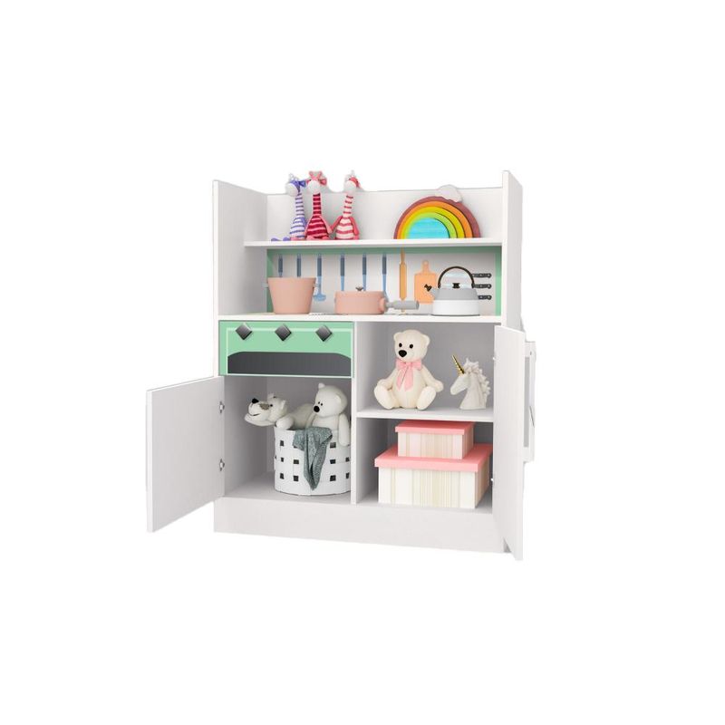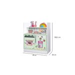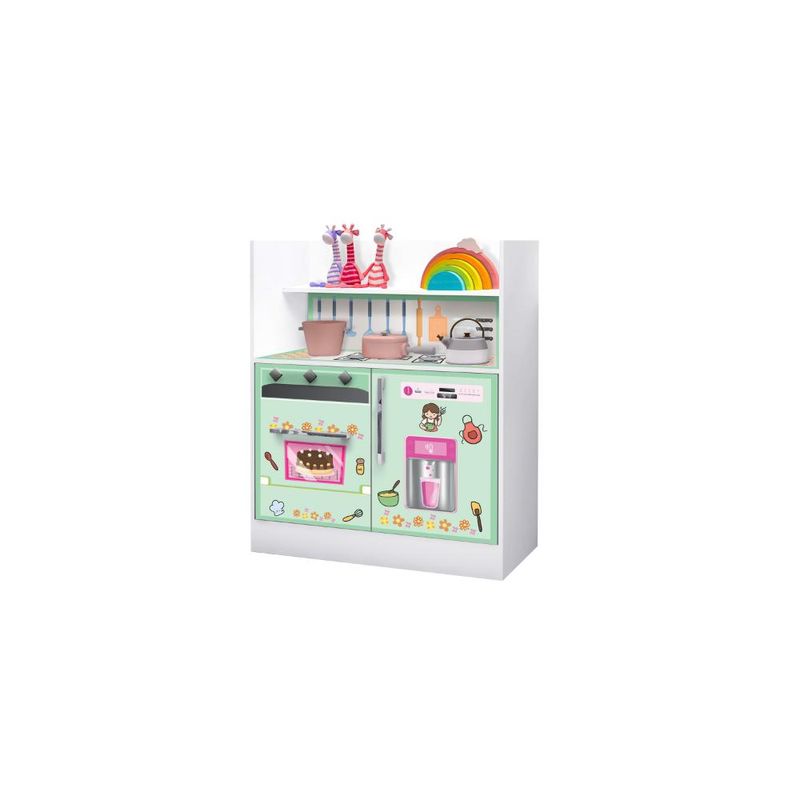 Produto em MDF/MDP – Porta brinquedos em forma de Cozinha Infantil. Possui 2 portas e 1 gaveta, além de 1 prateleira para melhor organizar os brinquedos de seus pequenos. Com pintura em UV semi brilho, é um produto pratico e decorativo. Utilizar pano seco na limpeza.