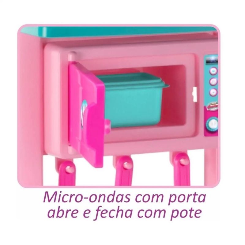 - Contém: 01 Cozinha Gourmet, 01 Frigideira, 05 Utensílios De Cozinha, 06 Ovinhos, 02 Legumes, 02 Frutas, 02 Pratinhos, 02 Potinhos