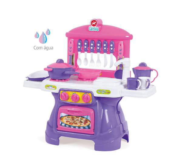 A mini chef tem forninho e pia que sai água de verdade para os pequenos e futuras (os) chefs prepararem comidinha igual a mamãe e o papai! Nela dá para cozinhar e lavar os pratos, talheres, copos e panelinhas. Além do fogão superior com botões que fazer creck creck, tem também o fogão para prepara aquela pizza deliciosa do faz de conta.