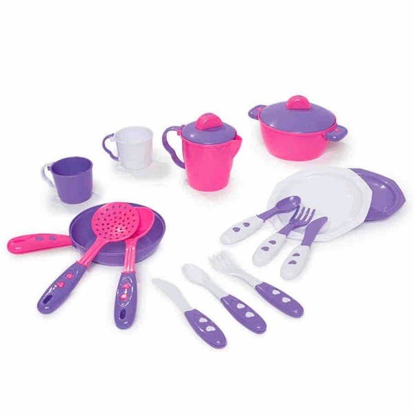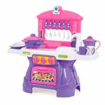 A Mini Chef conta com vários acessórios assim como pratos, xícaras, talheres e panelinhas.