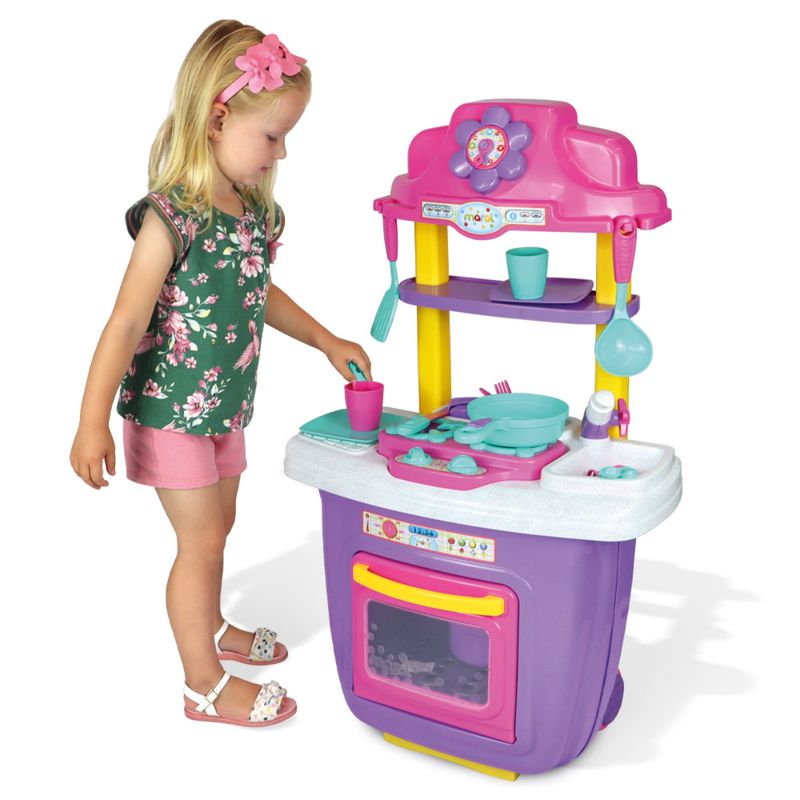 Cozinha Infantil Portátil com Rodinhas Rosa Maral 1009 | Help Kids