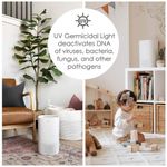 DESIGN COMPACTO PADRÃO O design deste poderoso purificador de ar é elegante e moderno, mas se encaixa bem com a decoração de qualquer ambiente. A unidade tem 17 x de profundidade e largura e de altura, tornando a uma opção compacta perfeita até mesmo para os menores espaços
