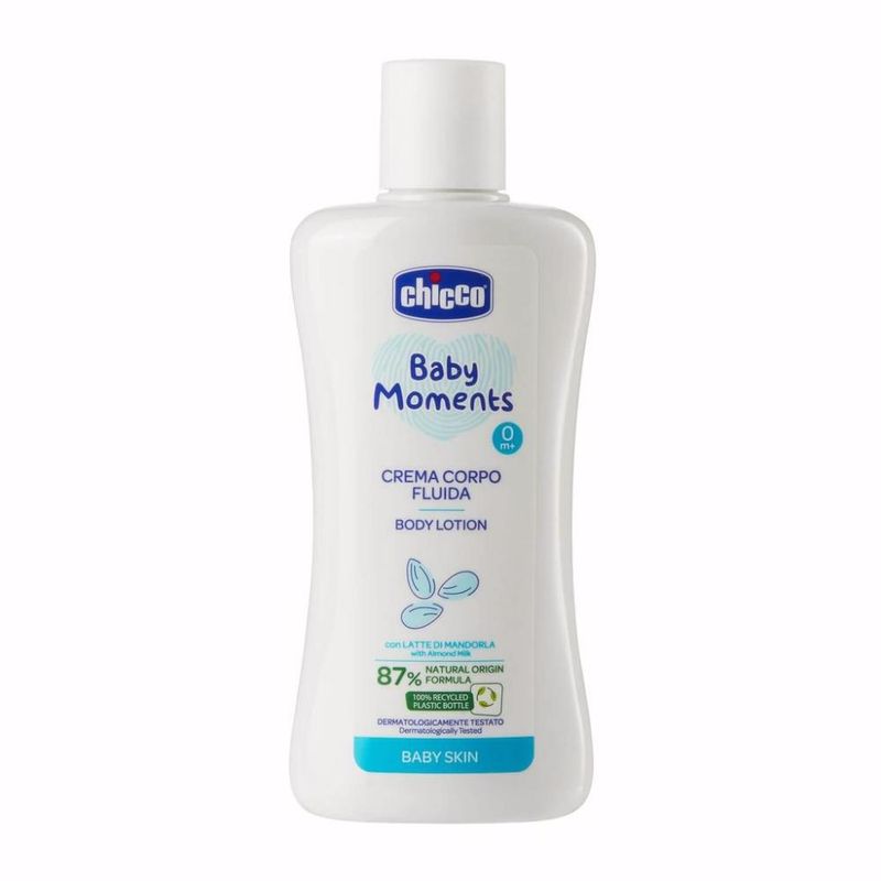 O Creme Corporal Baby Moments 200ml Pele Delicada Chicco possui fórmula delicada que contém 87% ingredientes naturais para cada momento carinhoso de hidratação, além de leite de amêndoas doce, conhecido por suas propriedades nutritivas e emolientes. O Creme Corporal não é gorduroso e de rápida absorção.