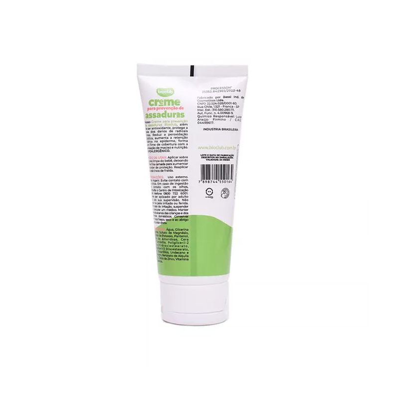 O Creme para prevenção de assaduras Bioclub, possui nanotecnologia, além de ser antioxidante, protege a pele dos danos de radicais livres. Reduz a peroxidação lipídica, ação anti-inflamatória, aumenta a retenção hídrica na epiderme, forma um filme de cobertura com sensação de maciez e nutrição.
