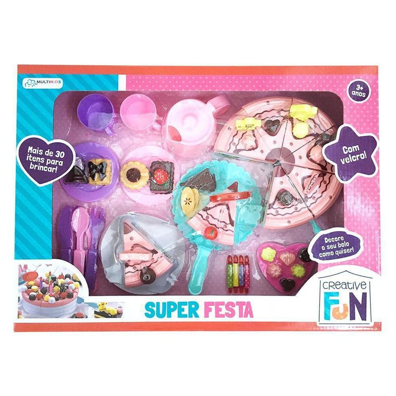 Com Creative Fun Super Festa você pode fazer uma festa super divertida para seus amigos! Decore o bolo e os docinhos como quiser! Quer um pedaço? Com as fatias com Fecho de Contatos você pode cortar e servir os pedaço do bolo! Vem também com um bule e xícaras para servir um delicioso chá e muitos outros acessórios que vão deixar sua festa incrível!