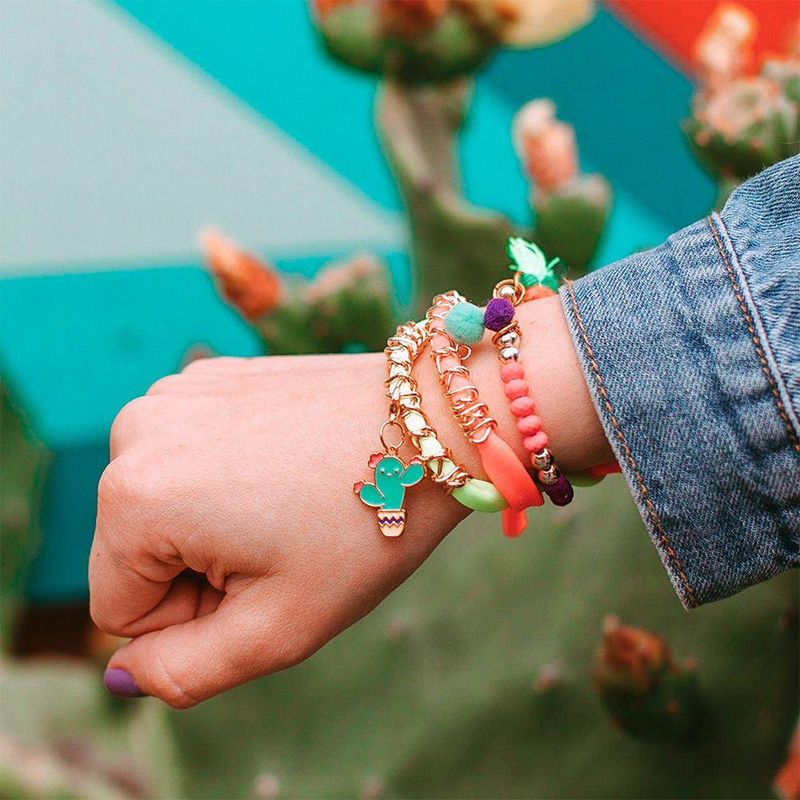 Nome do produto: Crie Suas Correntes e Amuletos Neo Brite;Idade recomendada: A partir de 8 anos;Selo Inmetro: 006241/2024;Contém: 164 contas diversas, 3 berloques exclusivos, 3 borlas, 6 berloques de pompom, 3 berloques de pedras, 6 cordões elásticos de tecido de 25 cm cada (2 rosas, 2 amarelos, 2 verdes), 5 peças de corrente americana dourada, 1 anel ajustável, 1 pompom rosa, 1 cordão elástico transparente de 2,5 m, 1 folha de instruções, 1 bandeja de trabalho.