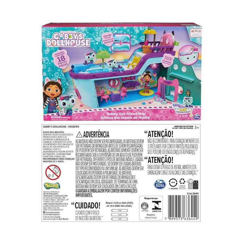 O Cruzeiro Gabbys Dollhouse da Sunny é um playset encantador que leva a diversão para alto-mar junto com a Gabby e seus amigos. Colorido, detalhado e cheio de surpresas, o cruzeiro vem com acessórios temáticos que permitem às crianças criarem suas próprias aventuras de imaginação. É possível abrir e explorar diferentes ambientes do navio, recriando cenas do desenho ou inventando novas histórias cheias de magia. Ideal para crianças a partir de 3 anos, este brinquedo estimula a criatividade, a coordenação motora e o faz de conta, garantindo horas de diversão. Um presente perfeito para fãs da série que adoram se transportar para o universo lúdico e divertido da Casa Mágica da Gabby.
