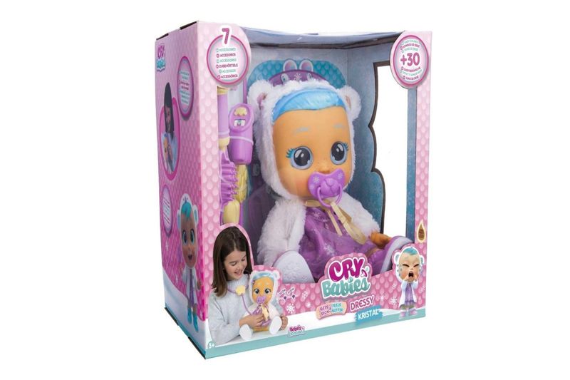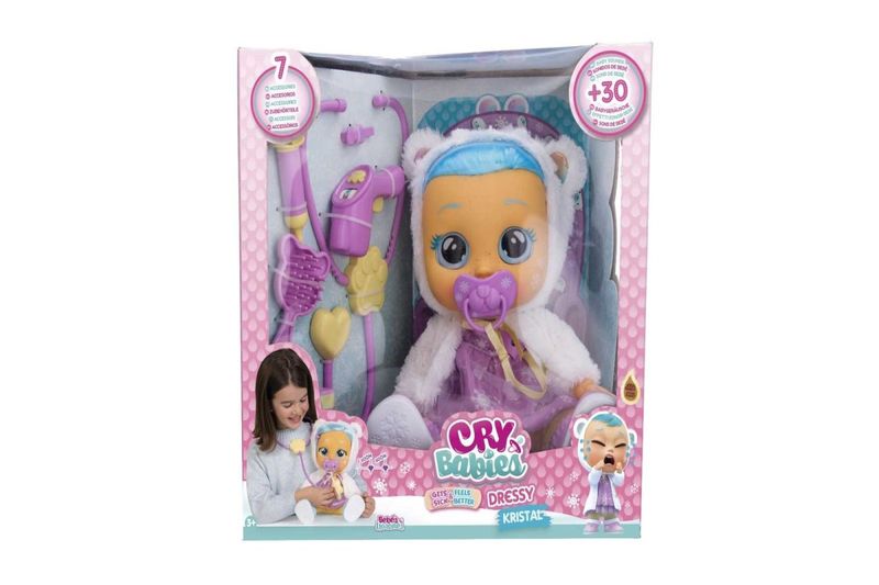Conteúdo da Embalagem: 1 Boneca Cry Babies Dressy Kristal Amando e Cuidando e Acessórios