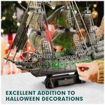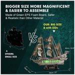 Iluminando o Holandês Voador com Design Detalhado Este magnífico modelo do Holandês Voador apresenta dois decks e uma fileira de canhões ferozes em cada lado do navio. Um design exclusivo de gurupés que consiste em estátuas de esqueletos e ornamentos detalhados criados. A madeira podre do casco com o LED verde, a proa do navio em forma de monstro e o misterioso deck de cocô da estátua darão vida ao seu quebra cabeça de navio 3d. E você pode apreciar a visão noturna do Flying Dutchman a qualquer momento.