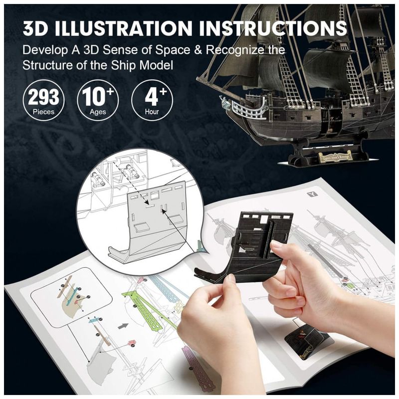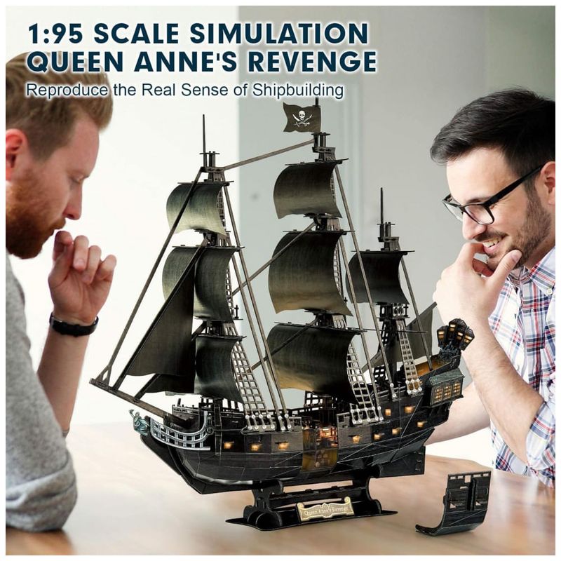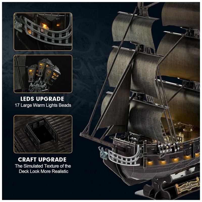 2021 Upgrade Master Series Puzzles Nova atualização tecnológica do CubicFun Pirate Ship, o acesso ao casco que pode ser aberto ao interior detalhado. Simulação em escala 195 Queen Annes Revenge adicionou 32 s de convés de plástico para melhorar a experiência de montagem.