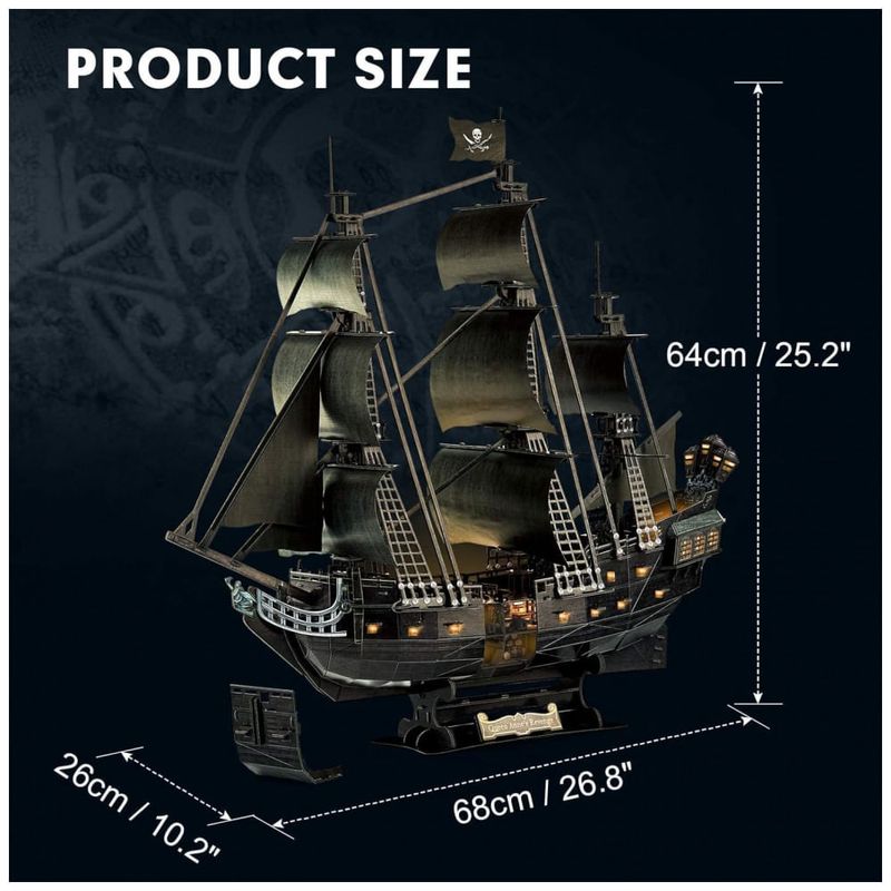 Aproveite o espírito aventureiro içar o Jolly Roger e zarpar. Aventura em alto mar aguarda com este modelo de navio 3D LED inspirado no Queen Annes Revenge, o navio histórico que carregou o famoso Barba Negra em suas conquistas através dos vastos mares.
