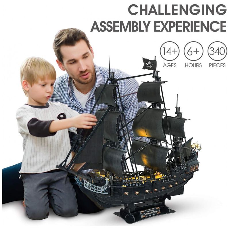 Maravilhoso Navio Modelo 3D O Queen Annes Revenge é um navio esculpido oco que o torna melhor iluminado com luz quente. O slot de cartão é especialmente projetado para o alinhamento do fio da lâmpada, e o fio da lâmpada pode ser fixado durante a instalação. Nenhuma ferramenta e necessidade de cola. Também pode ser um brinquedo autista para meninos, meninas e adultos.