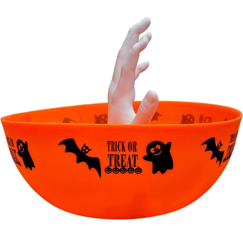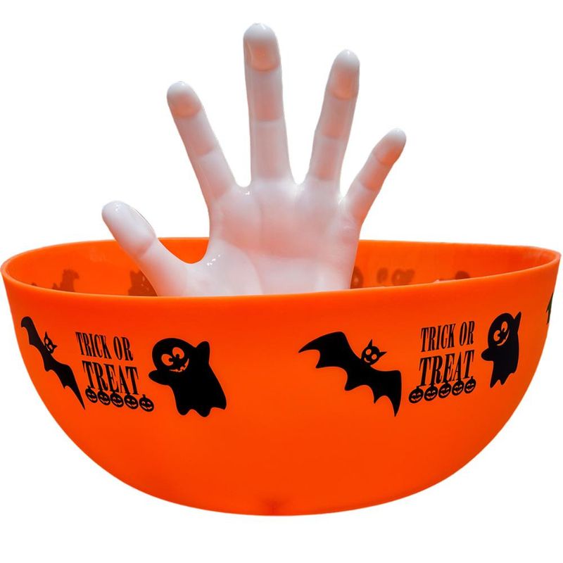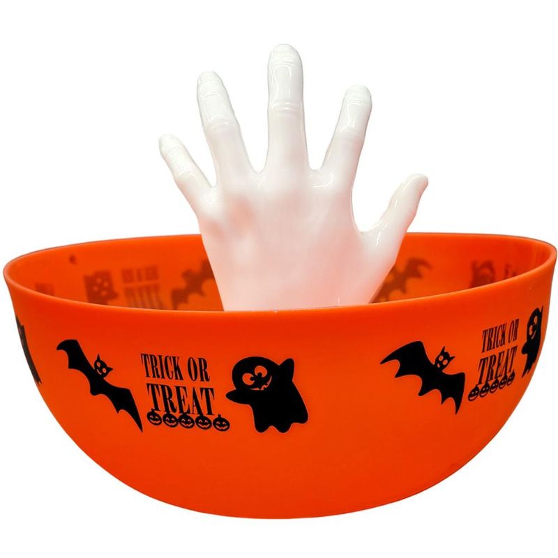 Sirva seus doces de Halloween com uma dose extra de susto e diversão com a Tigela Bowl com Mãozinha! Este item é a combinação perfeita de decoração criativa e utilidade, projetado para ser o centro das atenções na sua mesa de doces e travessuras. Com uma grande capacidade de 4,9 litros, esta tigela laranja é ideal para servir uma grande quantidade de doces, salgados ou guloseimas para os seus convidados. O grande destaque é a mão de fantasma branca que emerge do centro, criando um efeito divertido e assustador como se estivesse tentando pegar os doces. Prática, a mão é removível, o que facilita muito na hora de lavar e guardar o produto. Decoração Criativa e Funcional Prático e Versátil A mão é removível Fabricada em plástico resistente Tigela de 4,9 litros Possui 26 cm de diâmetro Design Temático de Halloween Perfeita para servir doces e decorar a mesa ao mesmo tempo