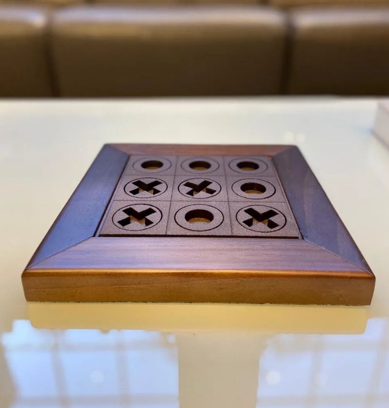 Peça Decorativa Jogo da Velha em Madeira Nogueira e Recouro Café