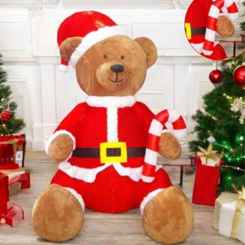 Gigante Urso Sentado Inflável, com 1,8 metros de altura ele possui uma textura com pelos realistas, esse adorável e imponente ursinho está segurando uma bengala clássica de natal. Fabricado com material de alta qualidade, esse enfeite luxuoso vai enfeitar muitos natais pois seu material é de alta qualidade, garantindo o reuso do produto muitas vezes, e tornando resistente para o uso externo e internos, ideal para arrasar e encantar crianças e adultos, seja na frente de casa, na frente de mansões, shoppings, lojas e restaurantes.