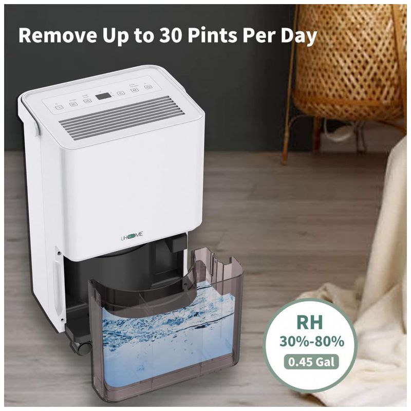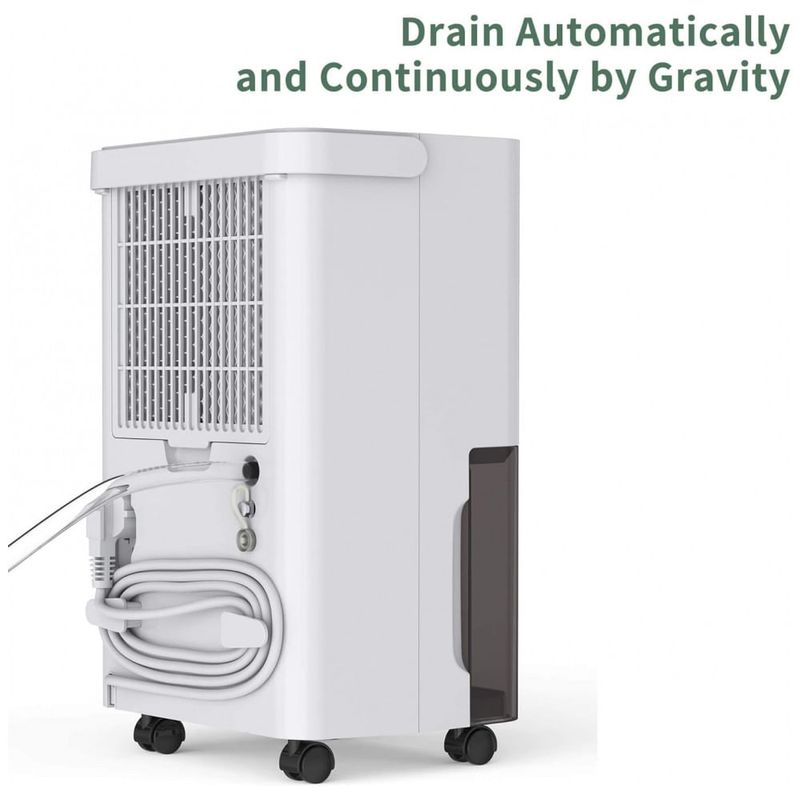 Dois tipos de drenagem sem complicações você pode ajustar o desumidificador para a configuração de umidade ideal e deixá lo funcionar continuamente por 24 horas até que o tanque esteja cheio. Quando a água estiver cheia, a luz indicadora do tanque ficará vermelha e emitirá um bipe, e a máquina desligará automaticamente para evitar o transbordamento de água. Em seguida, esvazie facilmente o tanque 1,7L, 0,45Gal com uma alça Se você não quiser derramar água manualmente o desumidificador com mangueira de drenagem 23,6 pol. ajuda a manter a drenagem contínua.