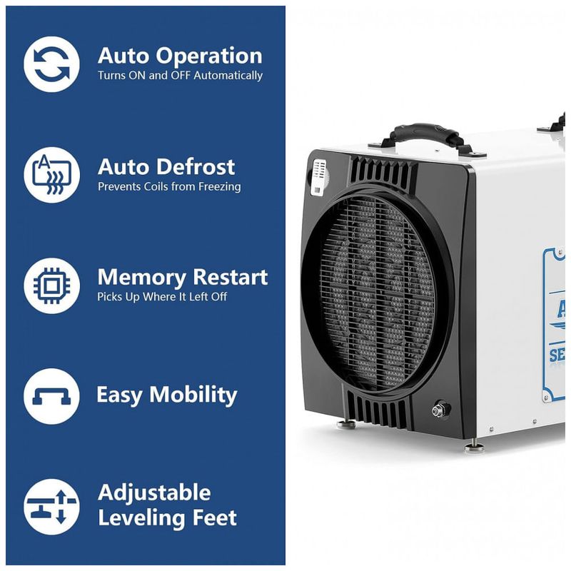 Desumidificador certificado Energy Star: remove a umidade de forma rápida e eficaz com menos energia do que os desumidificadores convencionais, sem aumentar sua conta de energia, economizando dinheiro. Será o melhor desumidificador de porão, espaço de rastreamento que você usará. Remova 42 litros por dia na condição AHAM, 93 litros na saturação, cobrindo até 241,5 metros quadrados, adequado para qualquer porão, espaço para rastejar, áreas de armazenamento, garagem, sala grande ou uso comercial.