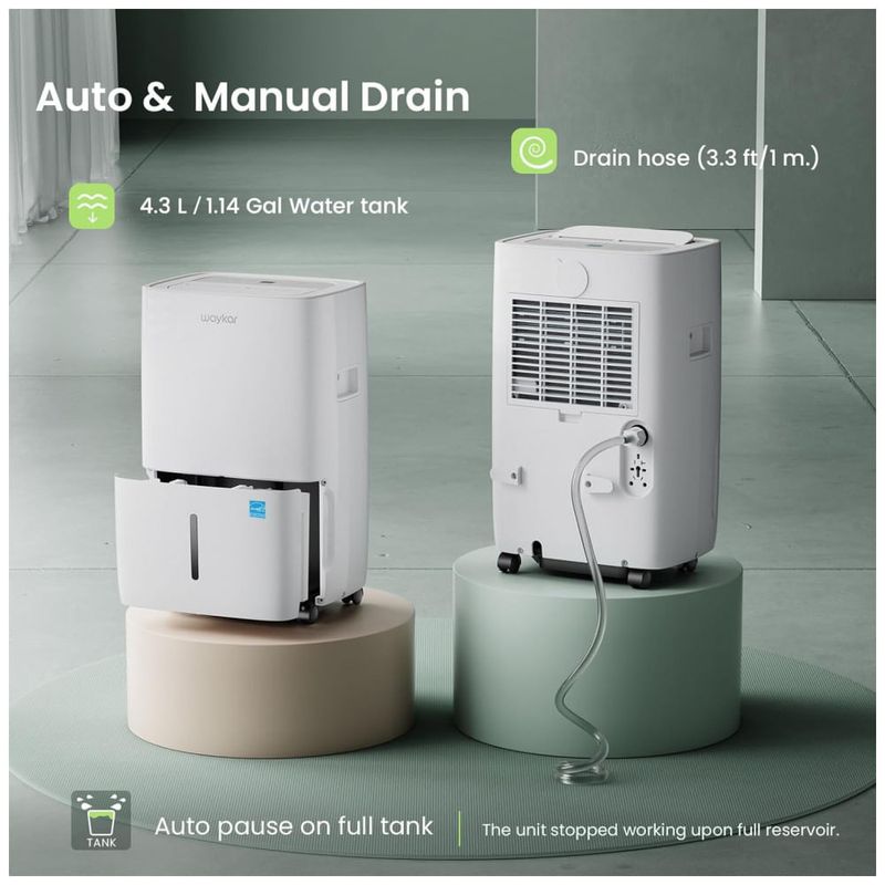EXPERIÊNCIA SILENCIOSA E DESIGN PORTÁTIL LEVE EM CASA Com um design silencioso exclusivo, você desfrutará de uma experiência silenciosa no ar confortável e seco. O ventilador oscilante ajuda a secar seu quarto mais rápido enquanto com menor DB de ruído. Coloque o em seu quarto e você terá um dia tranquilo e aconchegante com o desumidificador trabalhando ao seu lado. O desumidificador Waykar é compacto e leve. Os rodízios na parte inferior facilitam a movimentação da máquina de uma sala para outra.