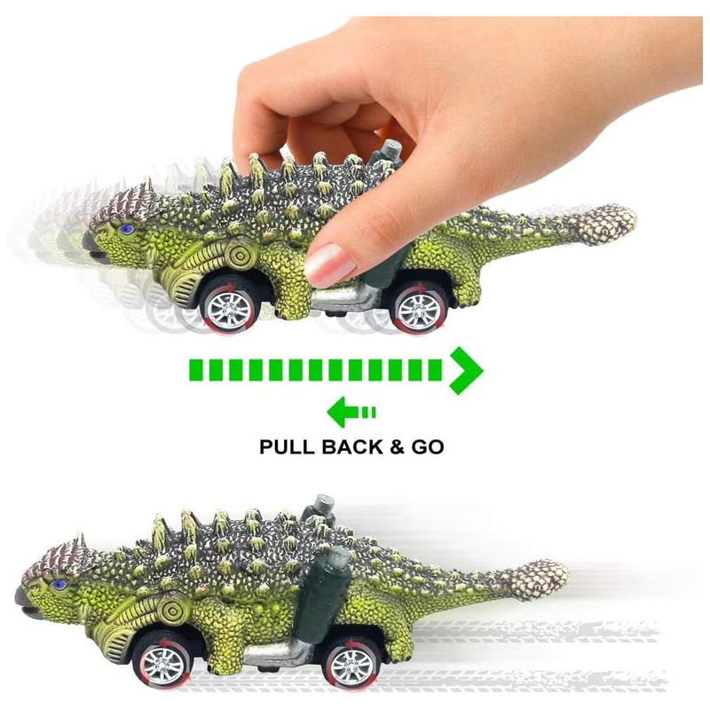 Desfrute deste conjunto de 6 carros de dinossauros cuidadosamente projetados, que são brinquedos perfeitos para meninos de 3 anos. Os brinquedos incluem TRex, Triceratops, Estegossauro, Anquilossauro, Pterossauro e Velociraptor. Com tamanho mini, aproximadamente 13 cm de comprimento, os carros de dinossauros são fáceis de segurar e brincar, ideais para crianças pequenas. Ao puxá-los para trás, os carros aceleram e são resistentes, proporcionando diversão e aprendizado sobre diferentes dinossauros. Ótimos como lembrancinhas de festa ou prêmio em aniversários temáticos de dinossauros, esses brinquedos ajudam as crianças a se encantarem com essas criaturas pré-históricas.