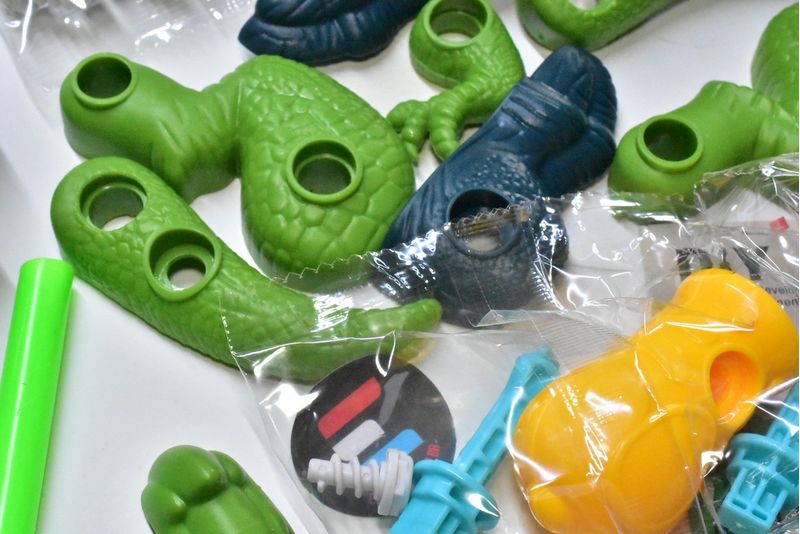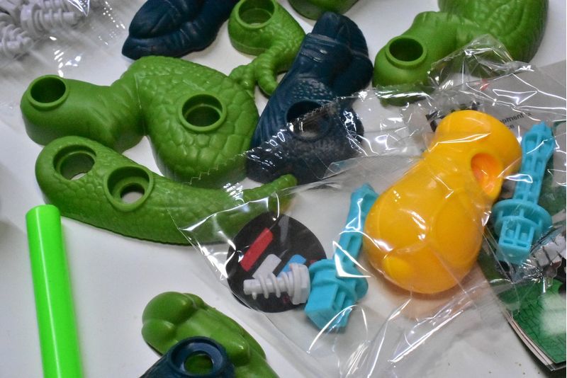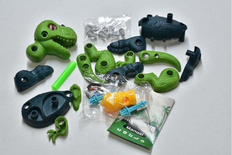 - Peças para montar um dinossauro (aproximadamente 17cm de altura)