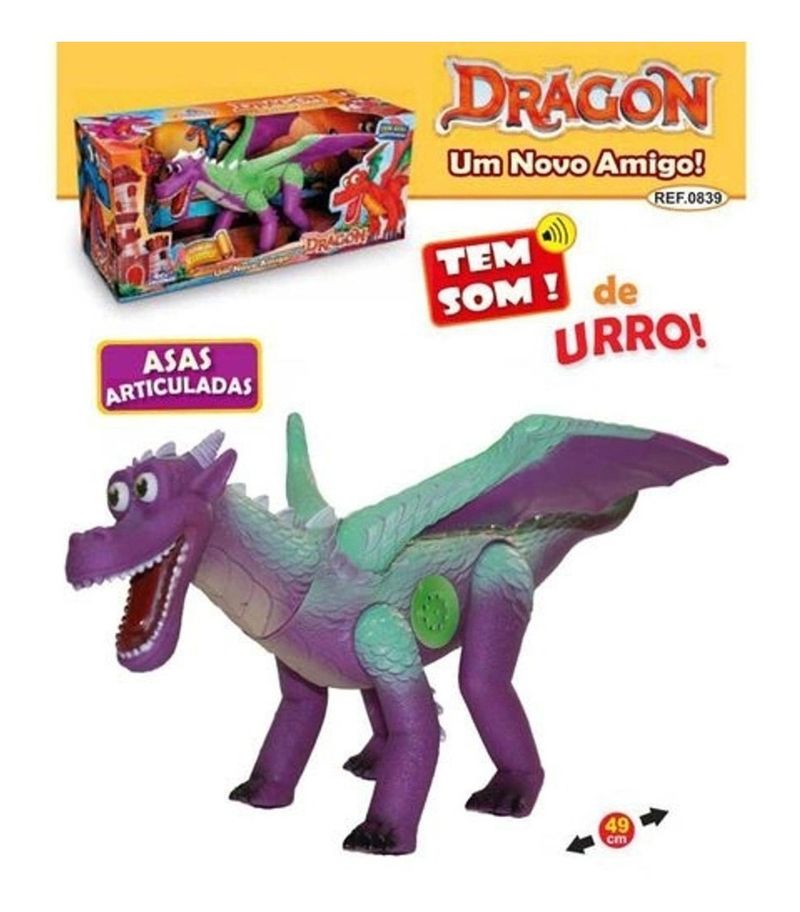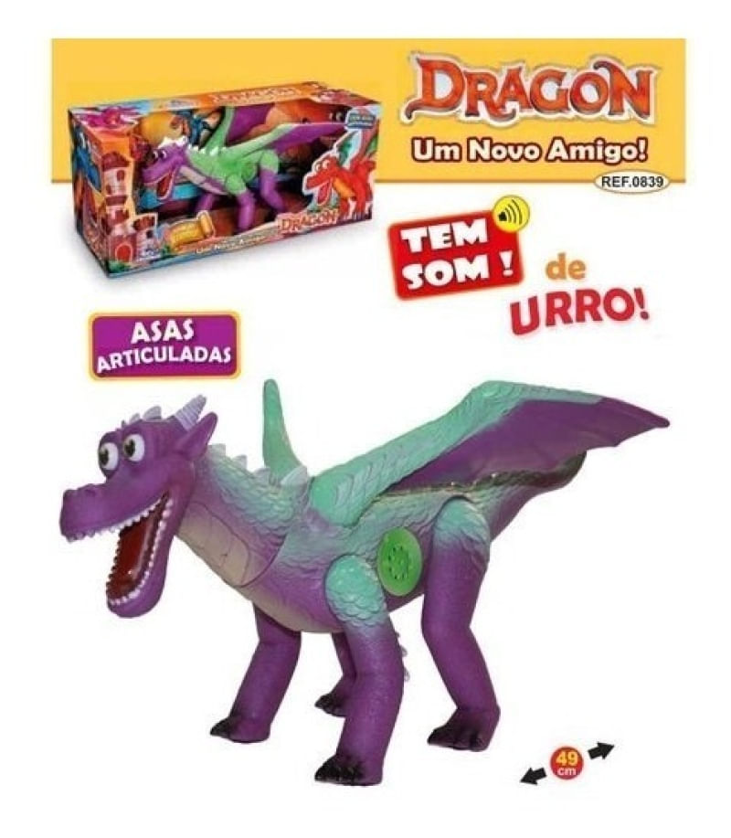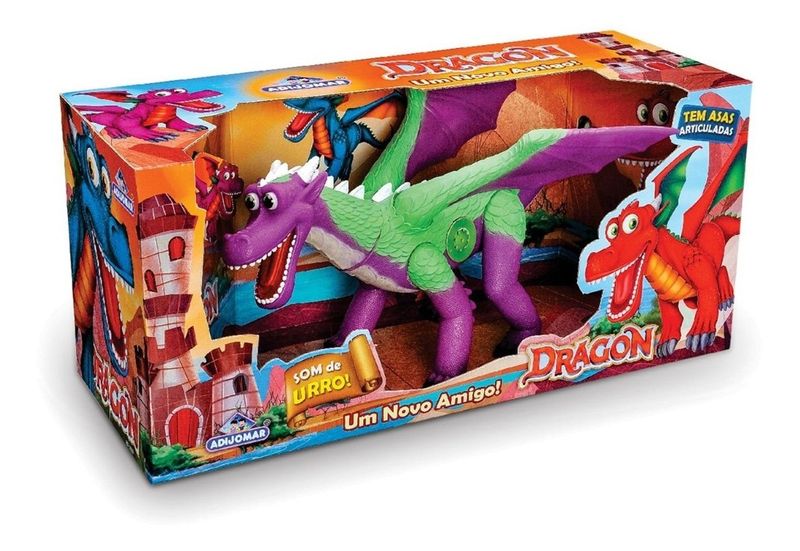 DINOSSAURO DRAGÃO ROXO C/ SOM E ASAS ARTICULADAS ADIJOMARAs crianças vão adorar seu novo amigo, Dragon da Adijomar.Ele tem 49 cm de comprimento, asas articuladas e ainda conta com dispositivo eletrônico que ao ser pressionado emite som de URRO, tornando a brincadeira ainda mais real e divertida.Feito com material de alta qualidade, é diversão garantida para todos os momentos!Especificações:Tamanho Aproximado: 49 (cm) de comprimento / 23 (cm) de alturaConfecção: vinilGarantia de 90 dias contra defeito de fabricação.