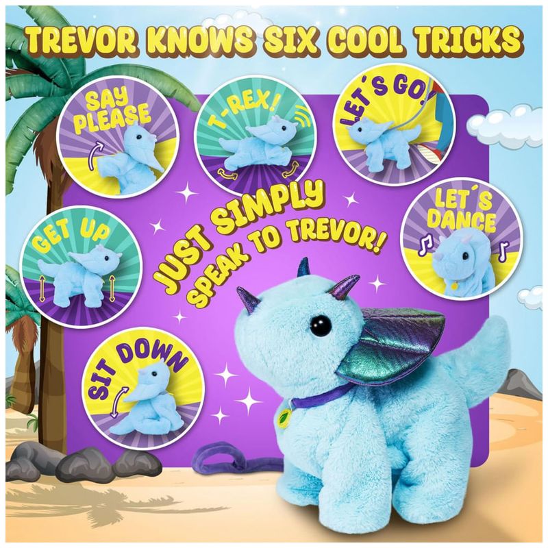 Domine 6 TRUQUES ATIVADOS POR VOZ e comande o Trevor para sentar, pedir, brincar ferido, andar, ficar de pé e dançar! Ele RESPONDE À SUA VOZ com ações realistas e sons de dinossauro adoráveis, tornando a brincadeira pré-histórica muito divertida! Leve-o para um PASSEIO DE DINOSSAURO e embarque em aventuras pré-históricas! Puxe sua coleira ou diga 'Vamos lá' para vê-lo caminhar ao seu lado. FESTA DE DANÇA DE DINOSSAURO: Assista o Trevor dançar com seus movimentos característicos. Companheiro ACONCHEGANTE: Suave, peludo e muito abraçável, o Trevor é o companheiro perfeito para amantes de dinossauros de todas as idades - sem bagunça, apenas diversão pura! Feito com materiais seguros e não tóxicos. PRESENTE DINOSSAURO DEFINITIVO: Procurando um presente incrível? O Trevor vem em uma caixa colorida e brilhante, fácil de embrulhar, sendo o presente perfeito para aniversários, feriados, Natal ou qualquer ocasião. Ideal para entusiastas de dinossauros a partir de 3 anos, basta inserir 4 pilhas AA (não incluídas) e a diversão começará!