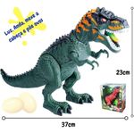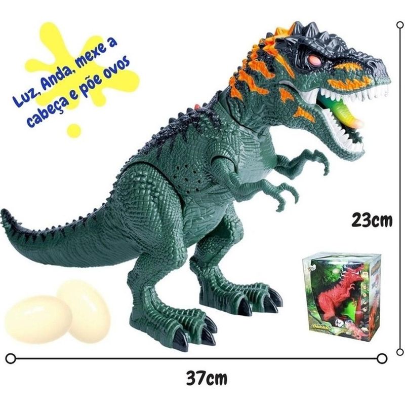 Conteúdo da embalagem: 1 Boneco Tiranossauro a pilha e 2 ovinhos de plástico.