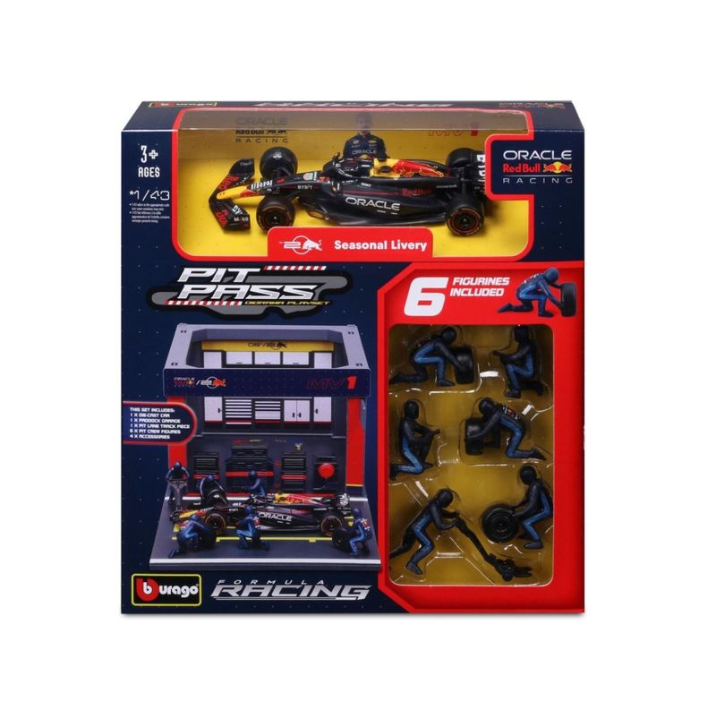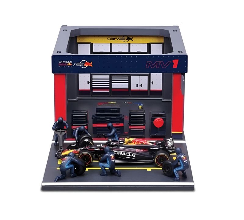 Diorama Garagem de Pit-Stop Oracle Red Bull Racing RB20 - Max Verstappen #1 Marca do produto: Bburago. Coleção: Pit Pass Diorama Playset. Viva a emoção da Fórmula 1 com este incrível playset Oracle Red Bull Racing RB20 Max Verstappen em escala 1:43 da Bburago! O kit traz um cenário completo de pit stop, incluindo a garagem da equipe, acessórios e 6 miniaturas de mecânicos em ação, recriando toda a adrenalina dos bastidores de uma corrida. Perfeito para colecionadores e fãs da Scuderia Red Bull, o conjunto apresenta detalhes realistas do carro utilizado por Max Verstappen (número 1) na temporada, além de um ambiente fiel de paddock e pit lane. O que acompanha: - 1 carro RB20 #1 em die-cast (escala 1:43) - 1 garagem/paddock Red Bull. - 6 figuras de mecânicos em ação.