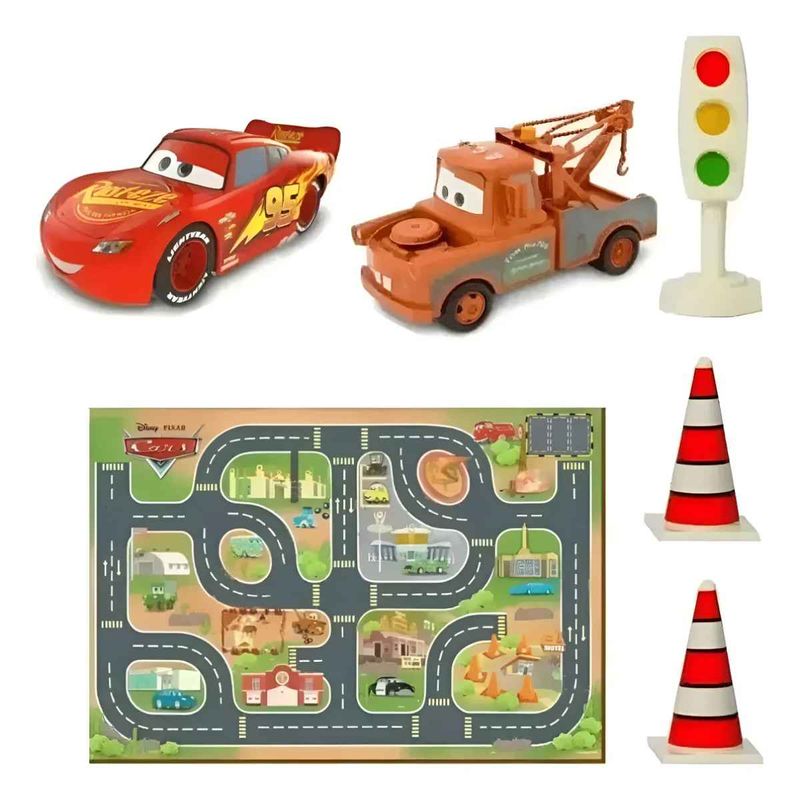 Kit 2 Carrinhos + Tapete + Acessórios Disney Carros
